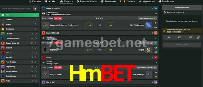 O Hmbet oferece uma grande seleção de opções de apostas em e-sports com probabilidades competitivas